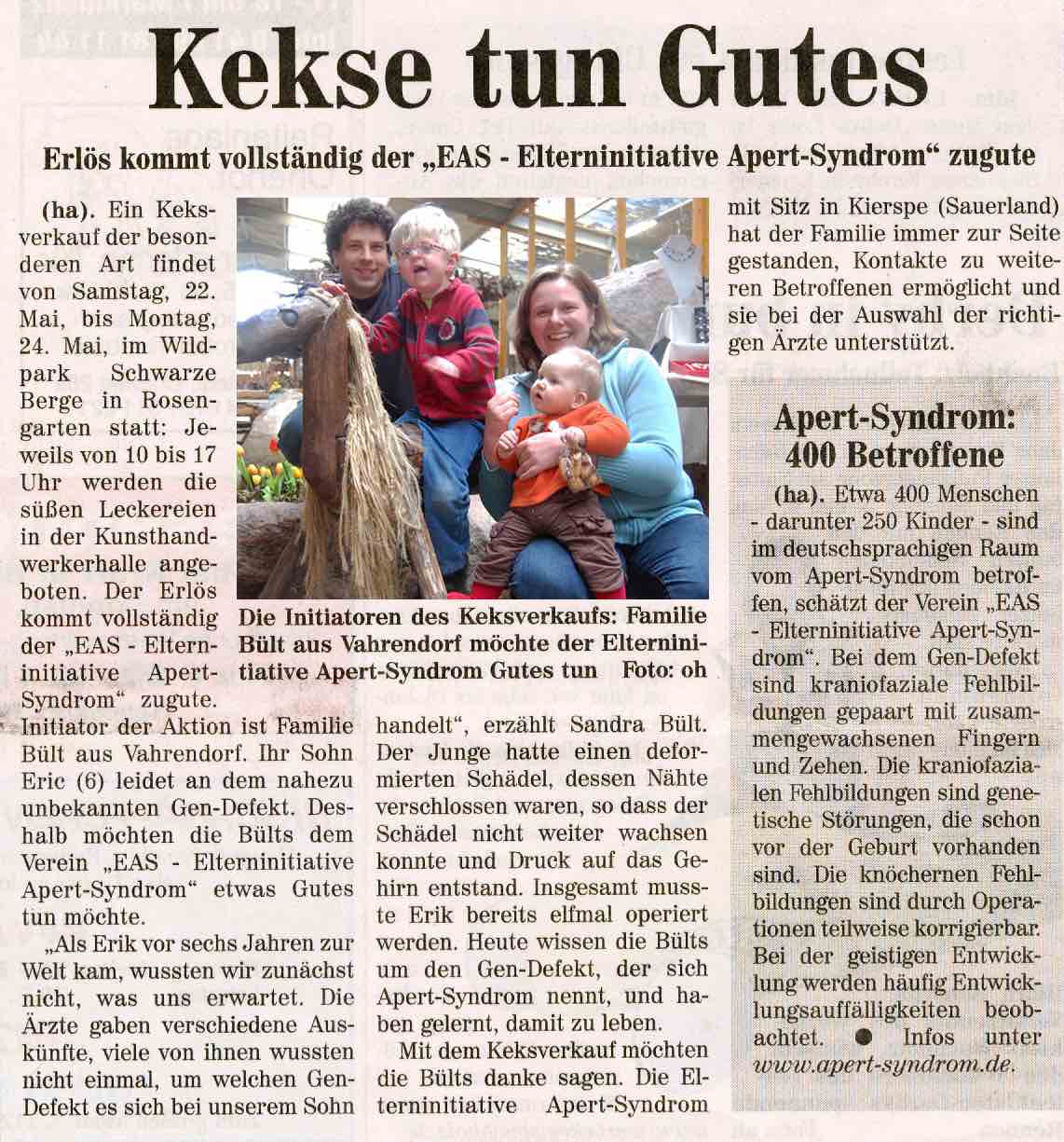 die die Eltern­in­itia­tive Apert-Syndrom und verwandte Fehlbil­dun­gen e. V. erhalten hat: