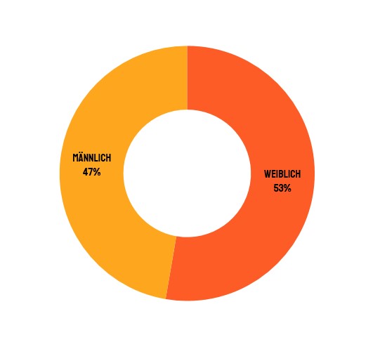 • Geschlech­ter­ver­tei­lung: 78 der 148 Betrof­fe­nen sind weiblich (53 %), 70 männlich (47 %)