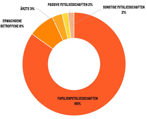 Davon 135 Familien mit Betrof­fe­nen, 13 erwach­sene Betrof­fene, 5 Ärzte, 3 passive Mitglied­schaf­ten sowie 3 sonstige Mitglied­schaf­ten: